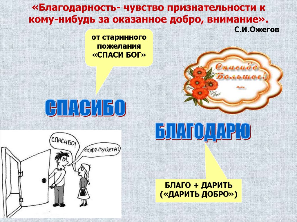 «Благодарность- чувство признательности ккому-нибудь за оказанное добро, внимание».