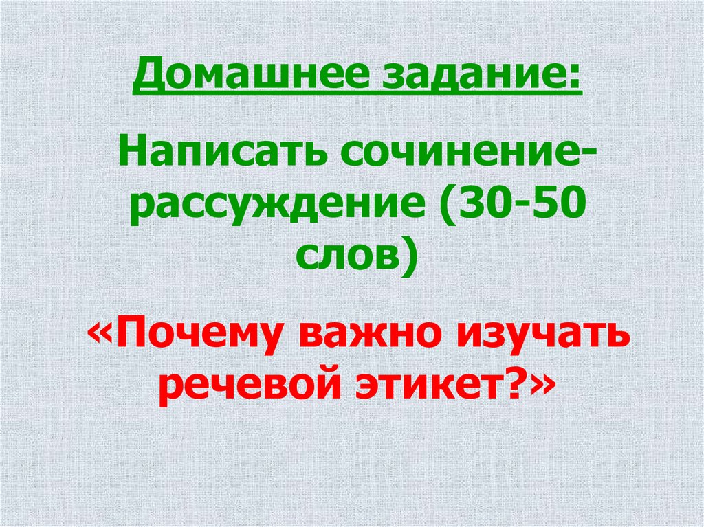 Домашнее задание:Написать сочинениерассуждение (30-50
