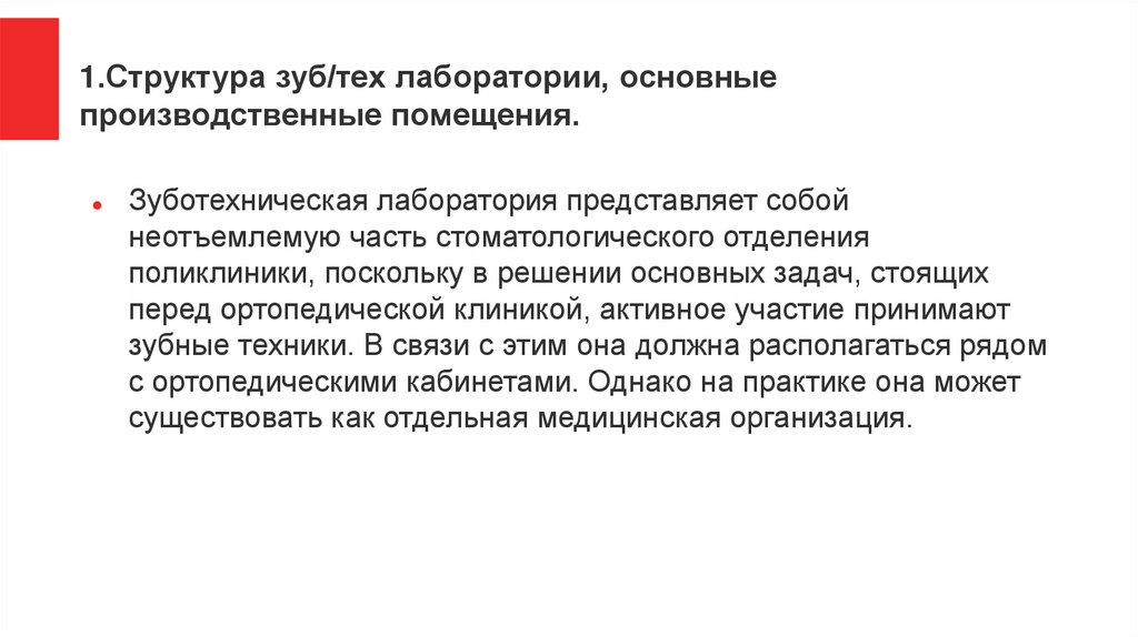 1.Структура зуб/тех лаборатории, основныепроизводственные помещения.