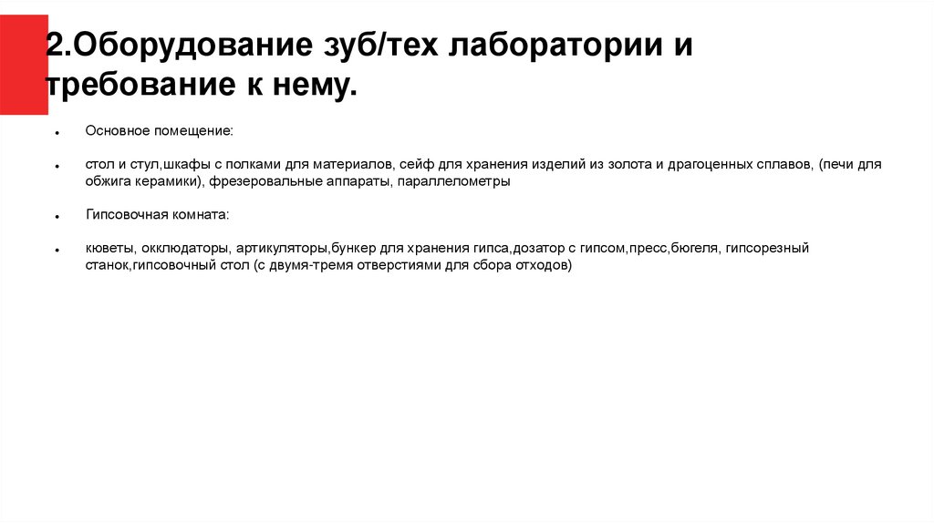 2.Оборудование зуб/тех лаборатории итребование к нему.
