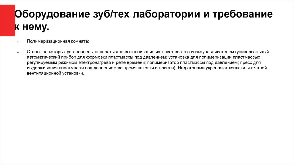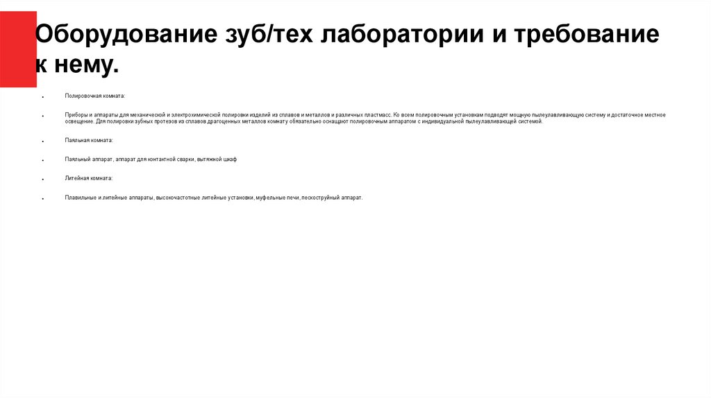 Оборудование зуб/тех лаборатории и требованиек нему.