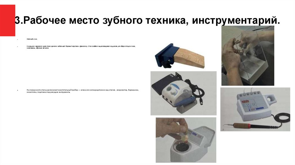 3.Рабочее место зубного техника, инструментарий.Рабочий стол.