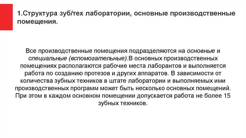 1.Структура зуб/тех лаборатории, основные производственныепомещения.