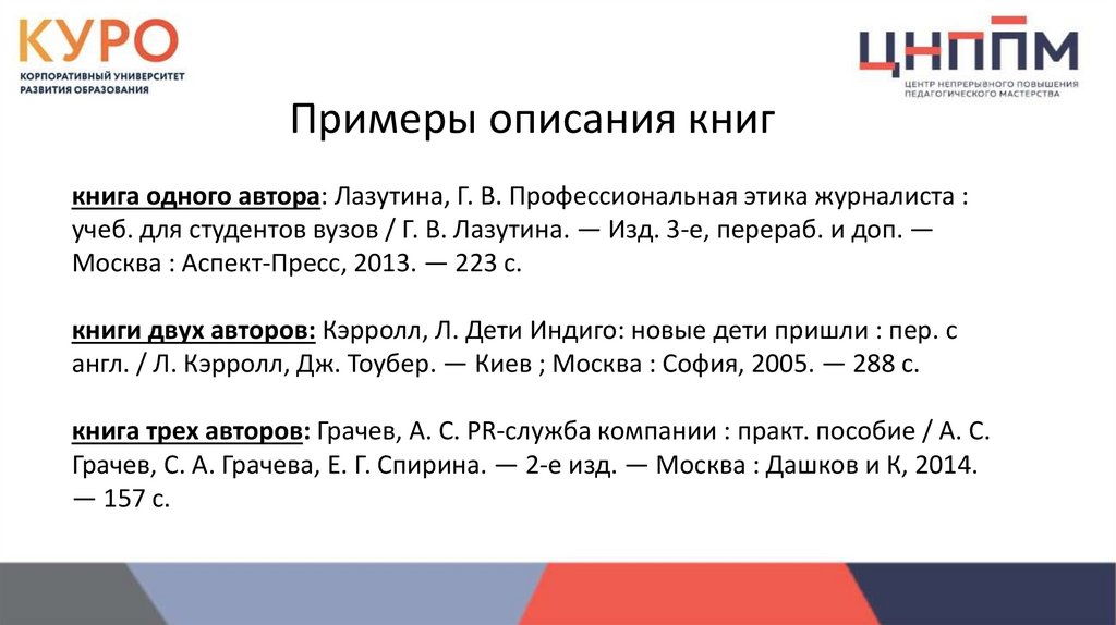 Примеры описания книгкнига одного автора: Лазутина, Г. В. Профессиональная этика журналиста :