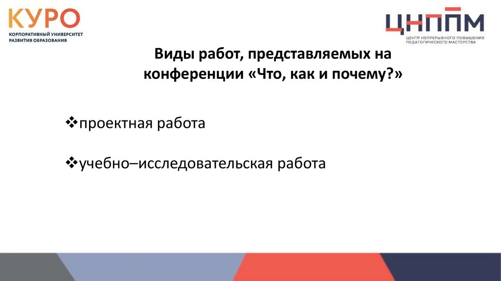 Виды работ, представляемых наконференции «Что, как и почему?»