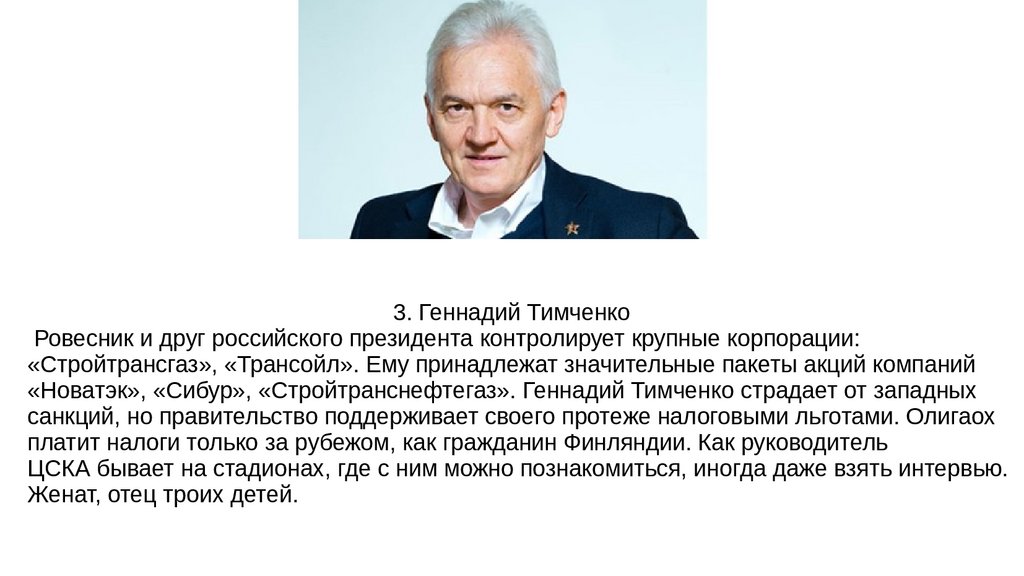 3. Геннадий ТимченкоРовесник и друг российского президента контролирует крупные корпорации: