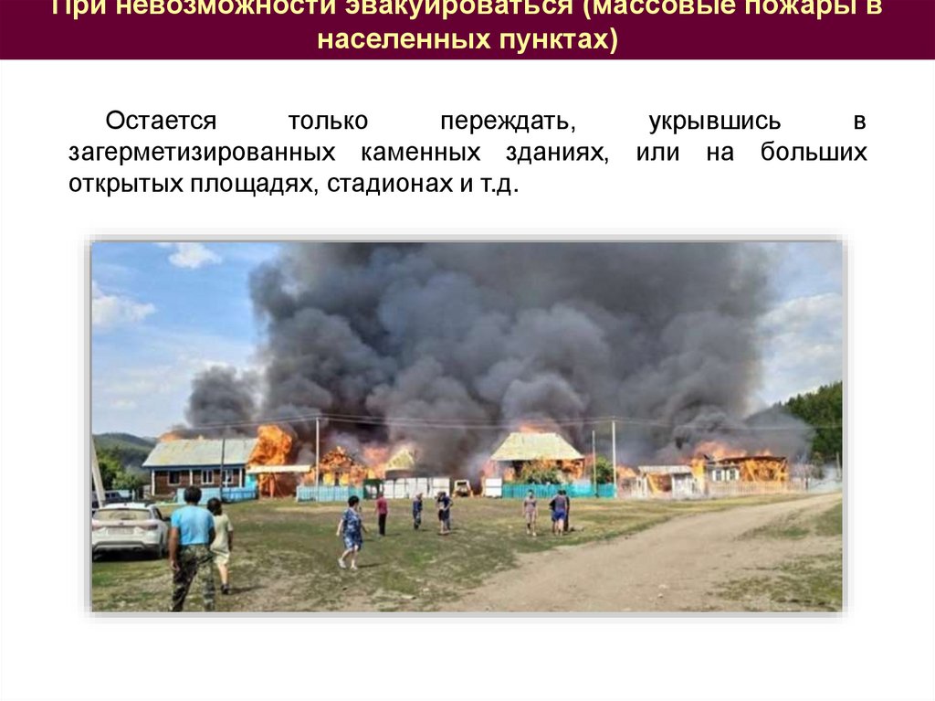 При невозможности эвакуироваться (массовые пожары внаселенных пунктах)