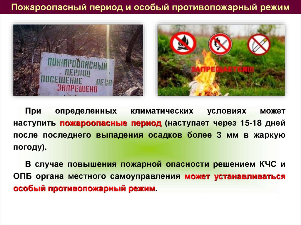 Пожароопасный период и особый противопожарный режимПри