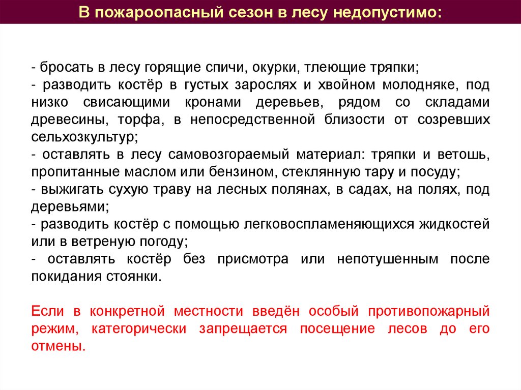 Особый противопожарный режимВ соответствии с Правилами пожарной безопасности в лесах