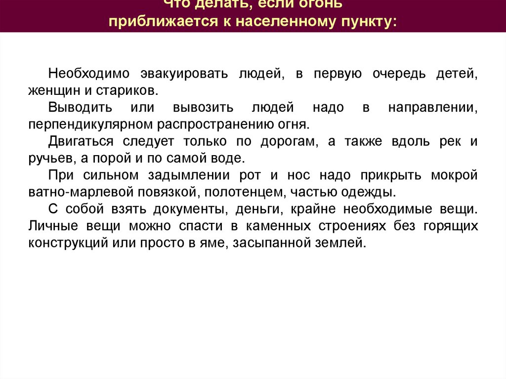 Что делать, если огоньприближается к населенному пункту: