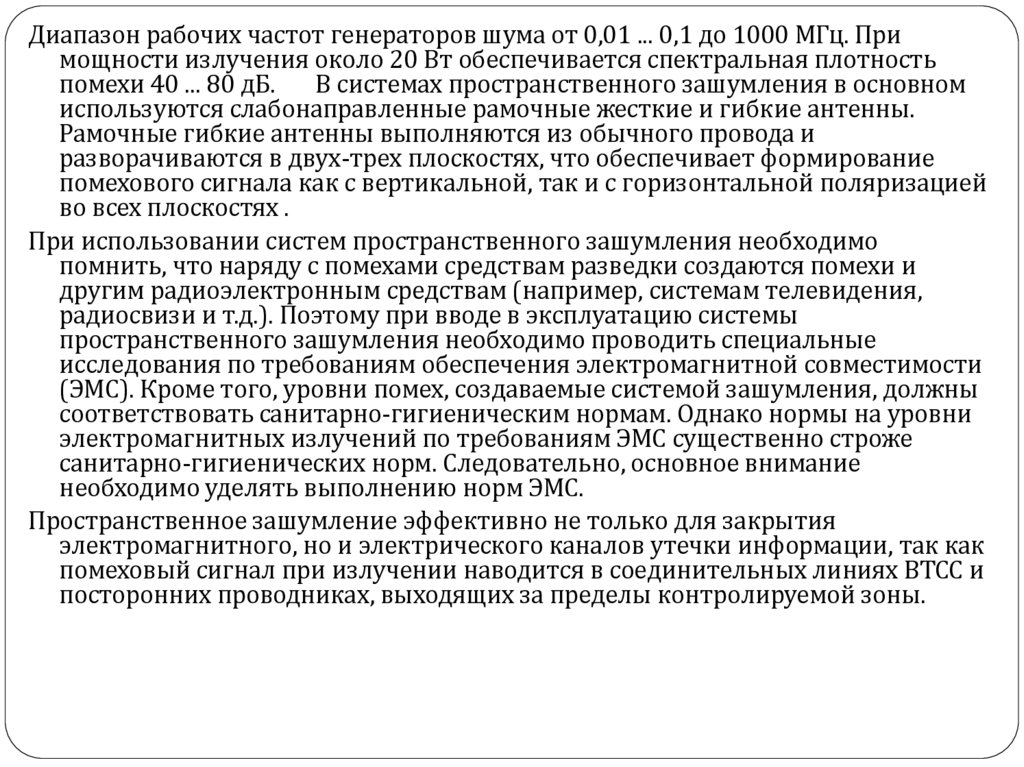 (ЭМС). Кроме того, уровни помех, создаваемые системой зашумления, должны