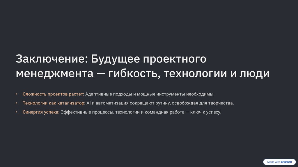 Заключение: Будущее проектногоменеджмента — гибкость, технологии и люди