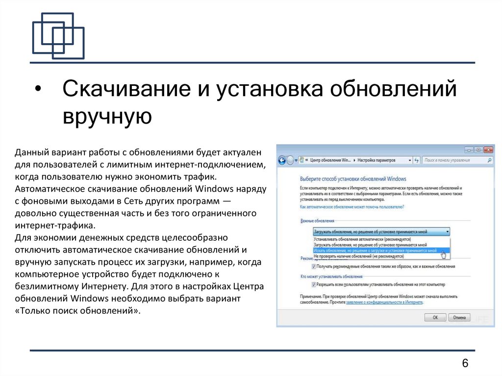 • Встроенными средствами ОСС помощью центра обновление Windows можно