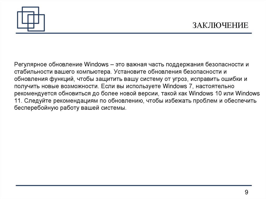 ЗАКЛЮЧЕНИЕРегулярное обновление Windows – это важная часть поддержания безопасности и