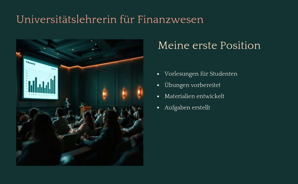 Universitätslehrerin für FinanzwesenMeine erste Position