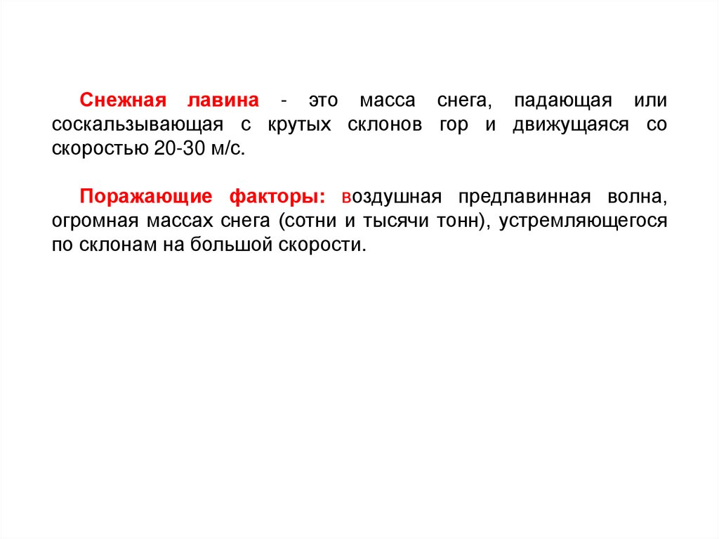 Снежная лавина - это масса снега, падающая илисоскальзывающая с крутых склонов гор и движущаяся со