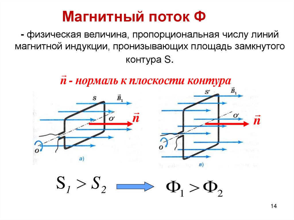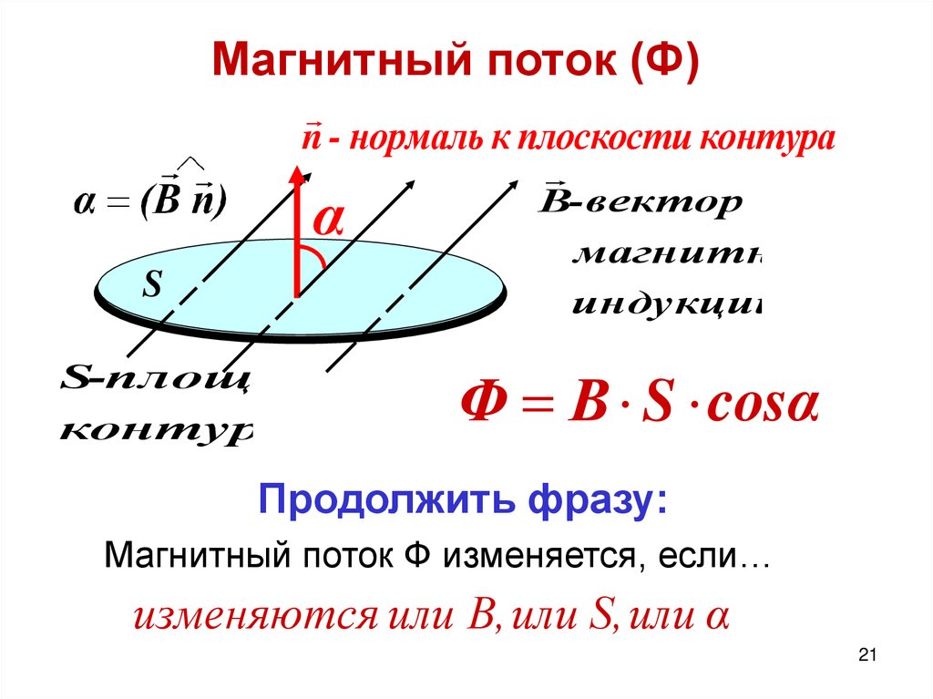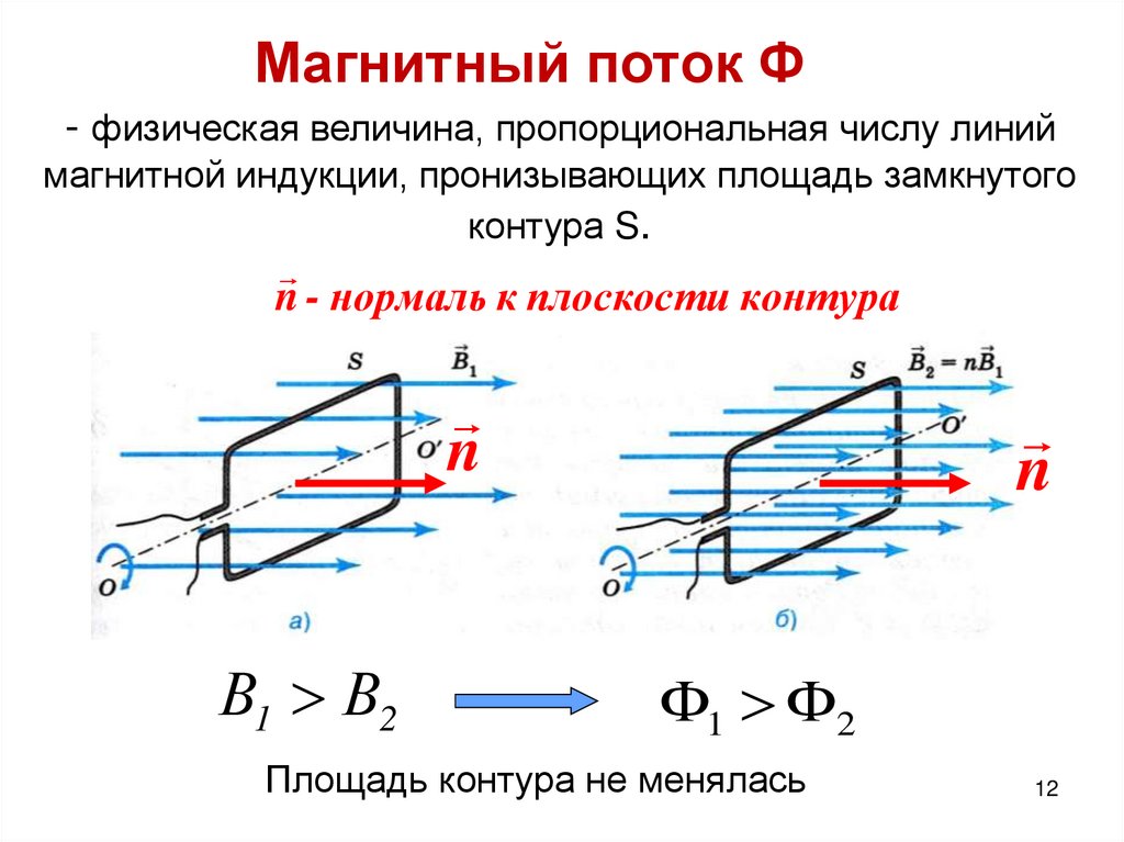 Магнитный поток (Ф)n - нормаль к плоскости контура