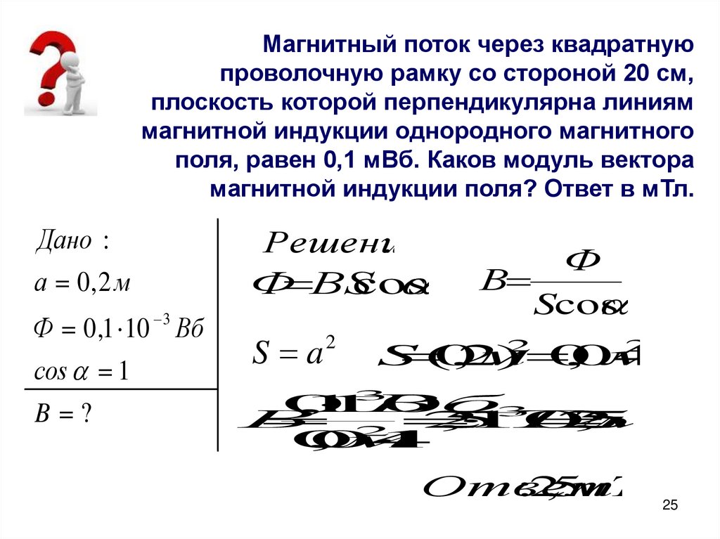 Магнитный поток через квадратнуюпроволочную рамку со стороной 20 см,