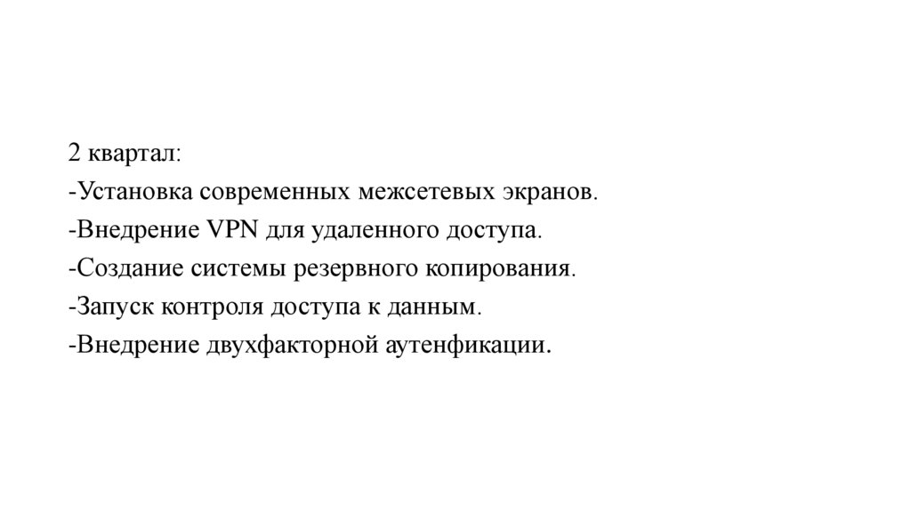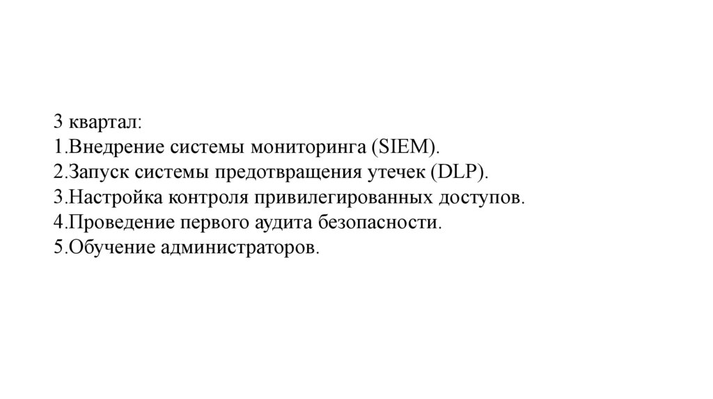3 квартал:1.Внедрение системы мониторинга (SIEM).