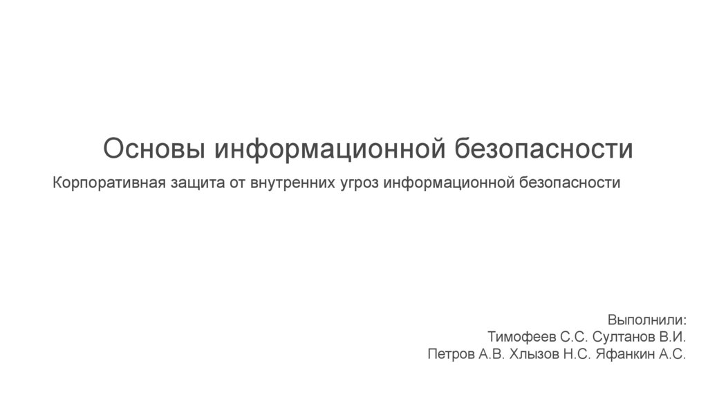 Основы информационной безопасностиКорпоративная защита от внутренних угроз информационной безопасности
