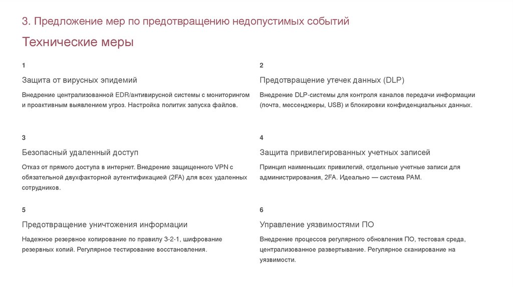 3. Предложение мер по предотвращению недопустимых событийТехнические меры