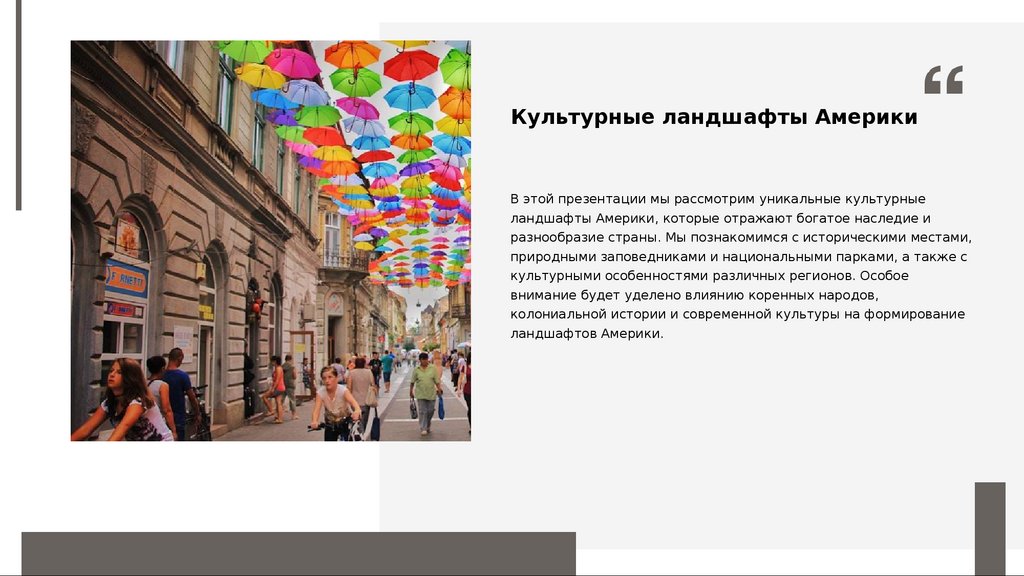 Культурные ландшафты АмерикиВ этой презентации мы рассмотрим уникальные культурные