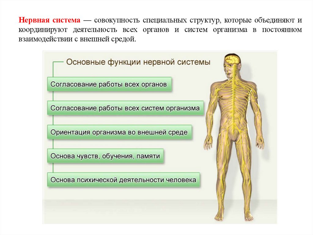 Нервная система — совокупность специальных структур, которые объединяют икоординируют деятельность всех органов и систем организма в постоянном