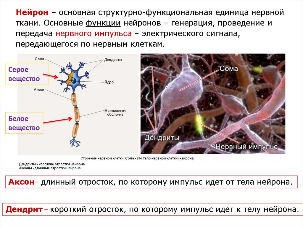Нейрон – основная структурно-функциональная единица нервнойткани. Основные функции нейронов – генерация, проведение и