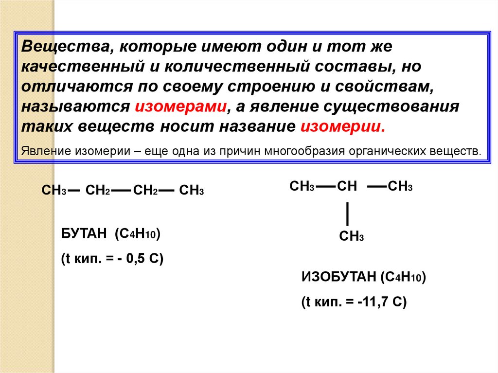 Явление изомерии – еще одна из причин многообразия органических веществ.