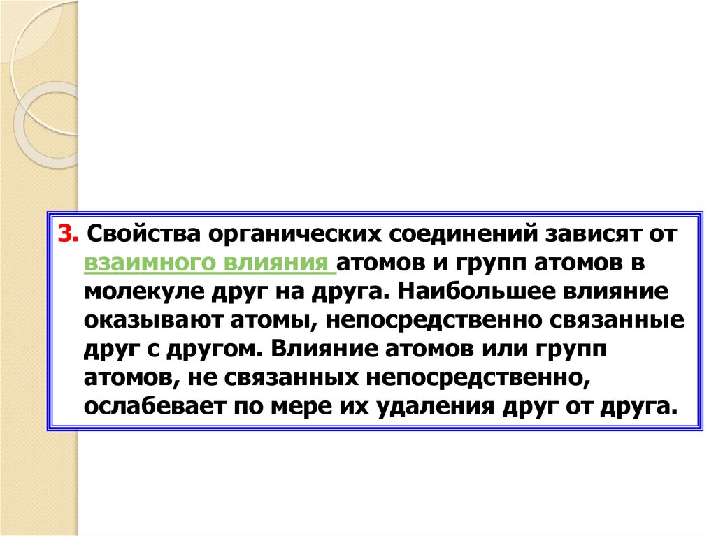 3. Свойства органических соединений зависят отвзаимного влияния атомов и групп атомов в