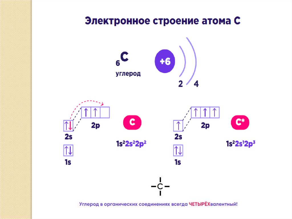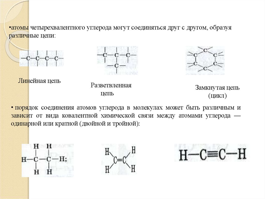 •атомы четырехвалентного углерода могут соединяться друг с другом, образуяразличные цепи: