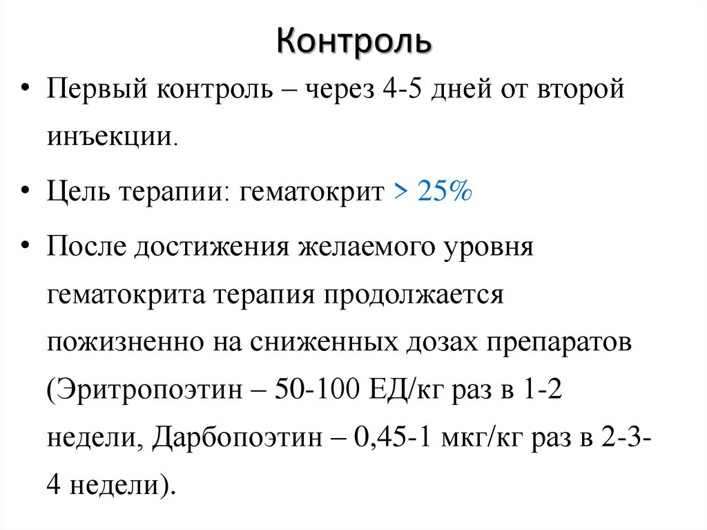 (Эритропоэтин – 50-100 ЕД/кг раз в 1-2