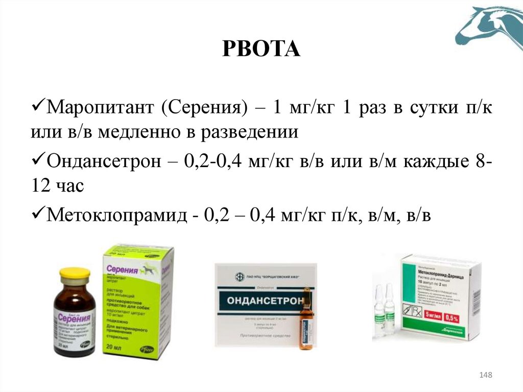 РВОТАМаропитант (Серения) – 1 мг/кг 1 раз в сутки п/к