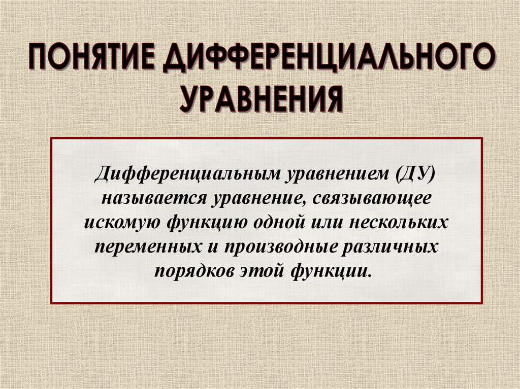 Дифференциальным уравнением (ДУ)называется уравнение, связывающее