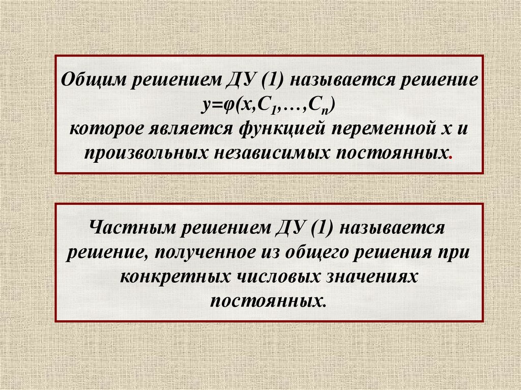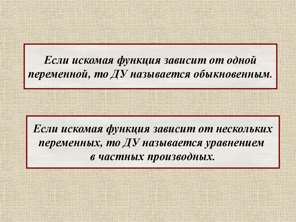 Если искомая функция зависит от однойпеременной, то ДУ называется обыкновенным.