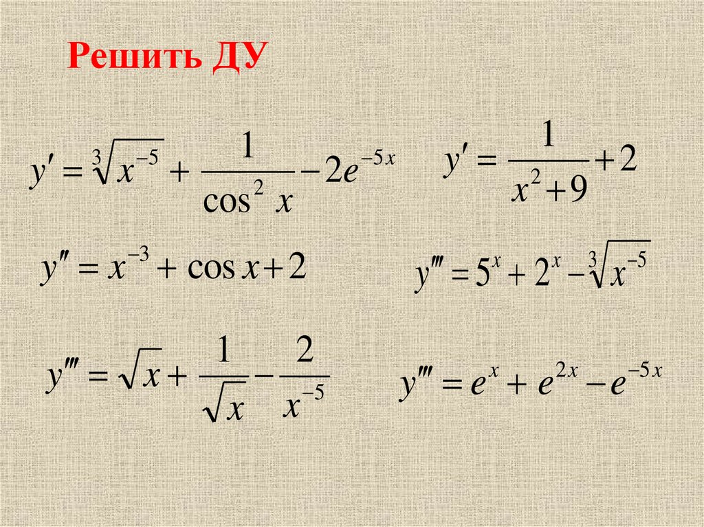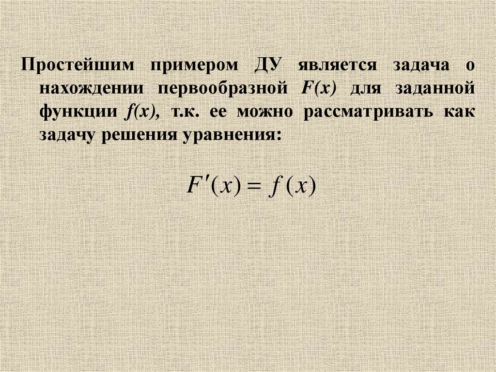 Простейшим примером ДУ является задача онахождении первообразной F(x) для заданной