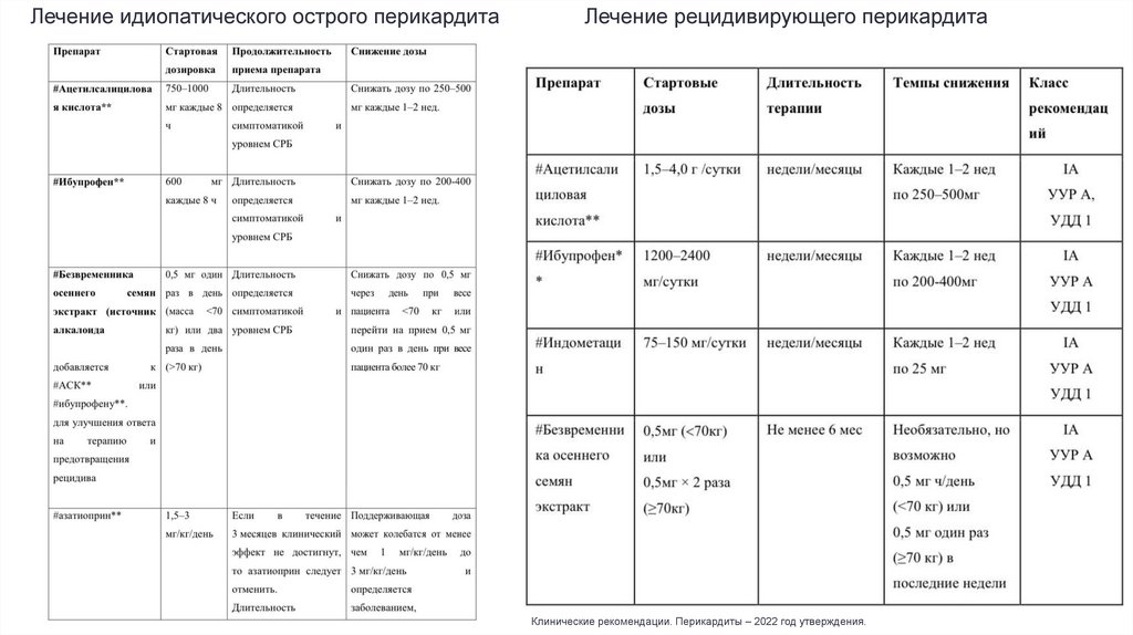 Клинические рекомендации «Перикардиты». 2022. 145с.):