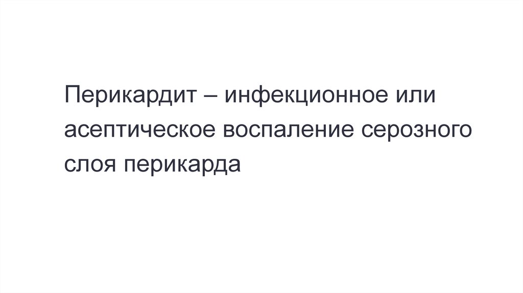 Перикардит – инфекционное илиасептическое воспаление серозного