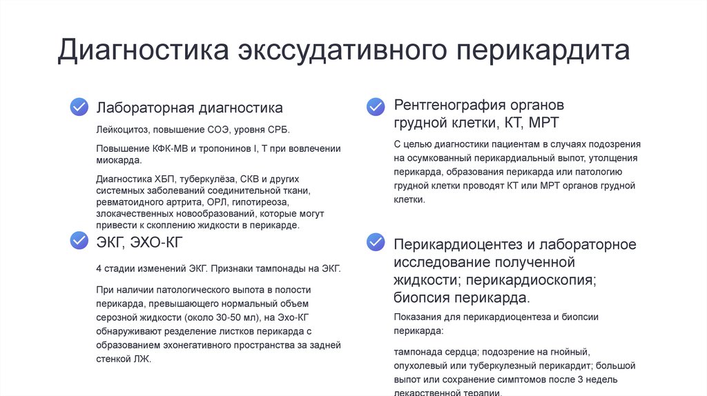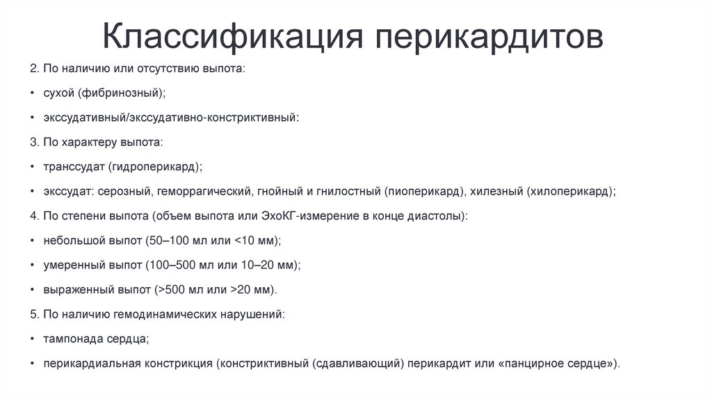 Классификация перикардитовКлиническая классификация перикардитов (Министерство здравоохранения Российской федерации.