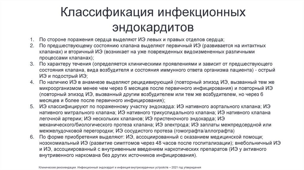 5. Клинические рекомендации. Инфекционный эндокардит и инфекция внутрисердечных устройств –