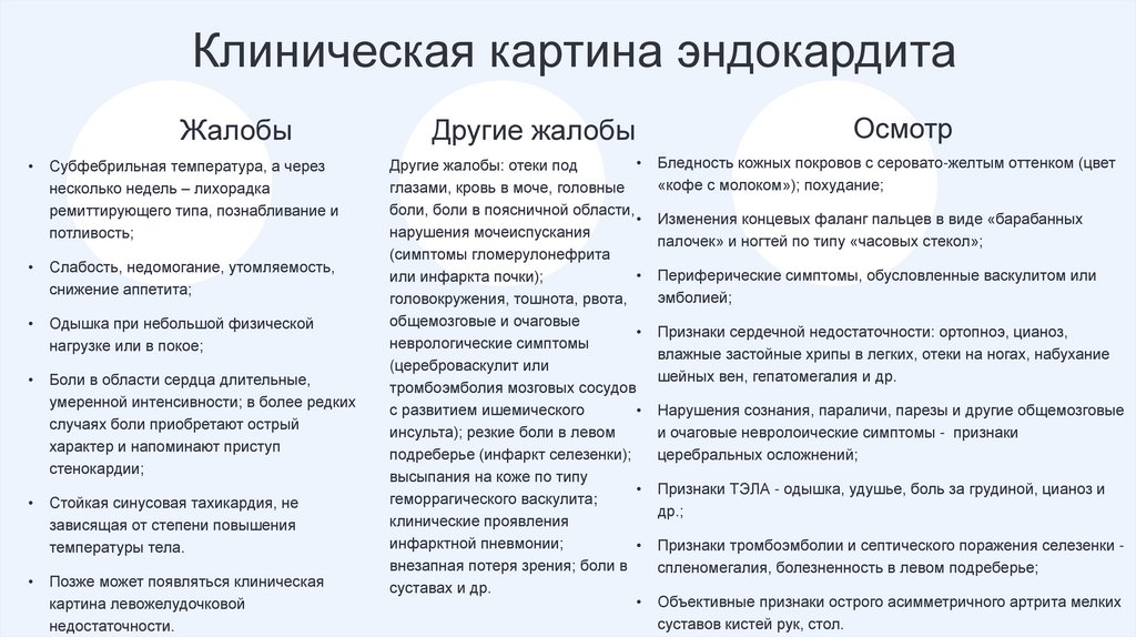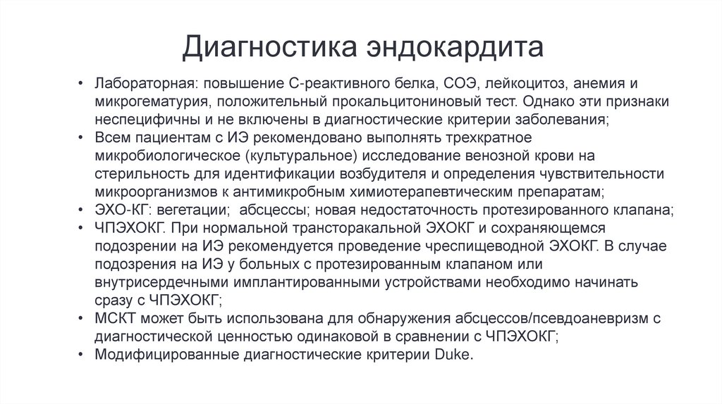• Модифицированные диагностические критерии Duke.