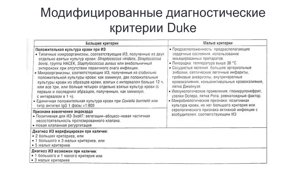Модифицированные диагностическиекритерии Duke