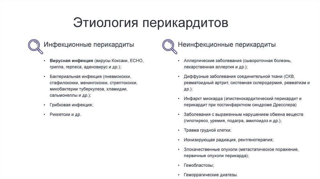 Этиология перикардитовИнфекционные перикардиты