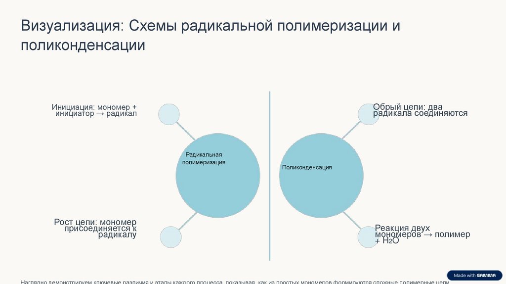 Визуализация: Схемы радикальной полимеризации иполиконденсации