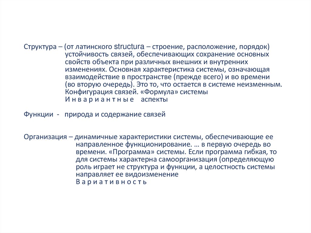 Структура – (от латинского structura – строение, расположение, порядок)устойчивость связей, обеспечивающих сохранение основных