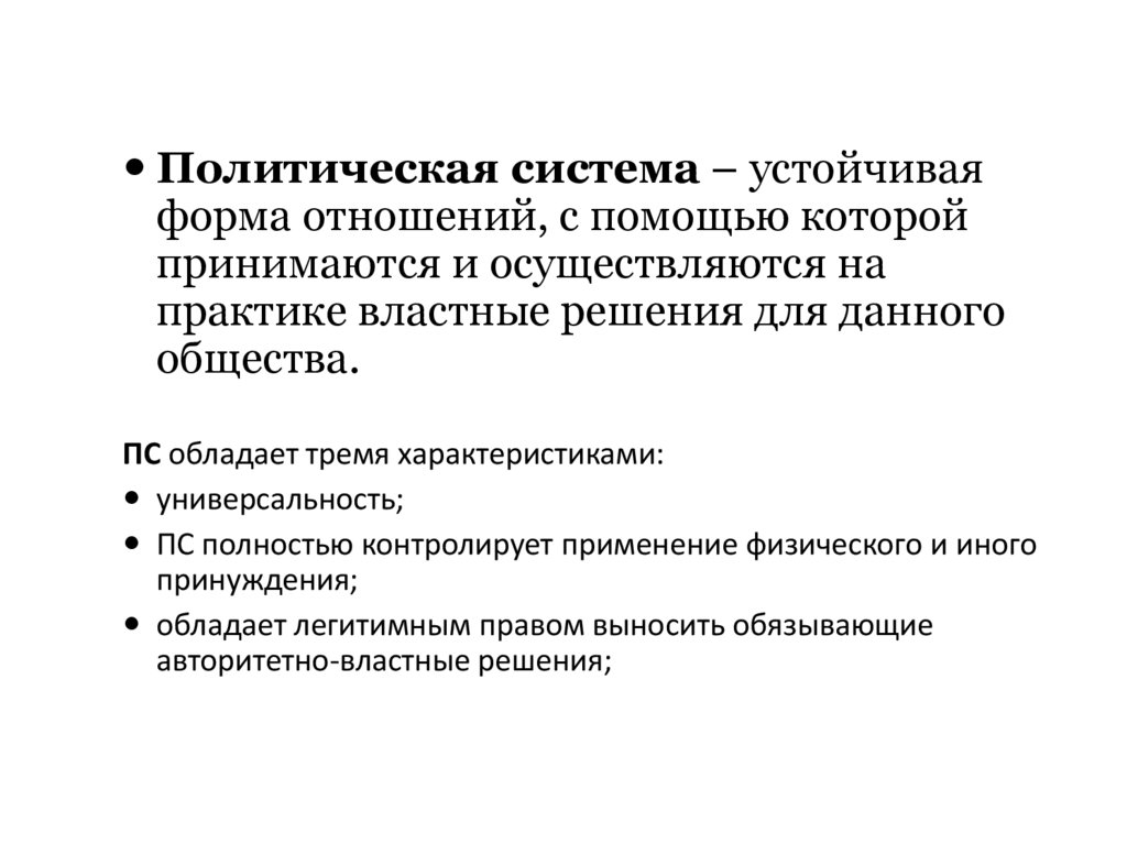 1. Понятие «политическая система», ипризнаки