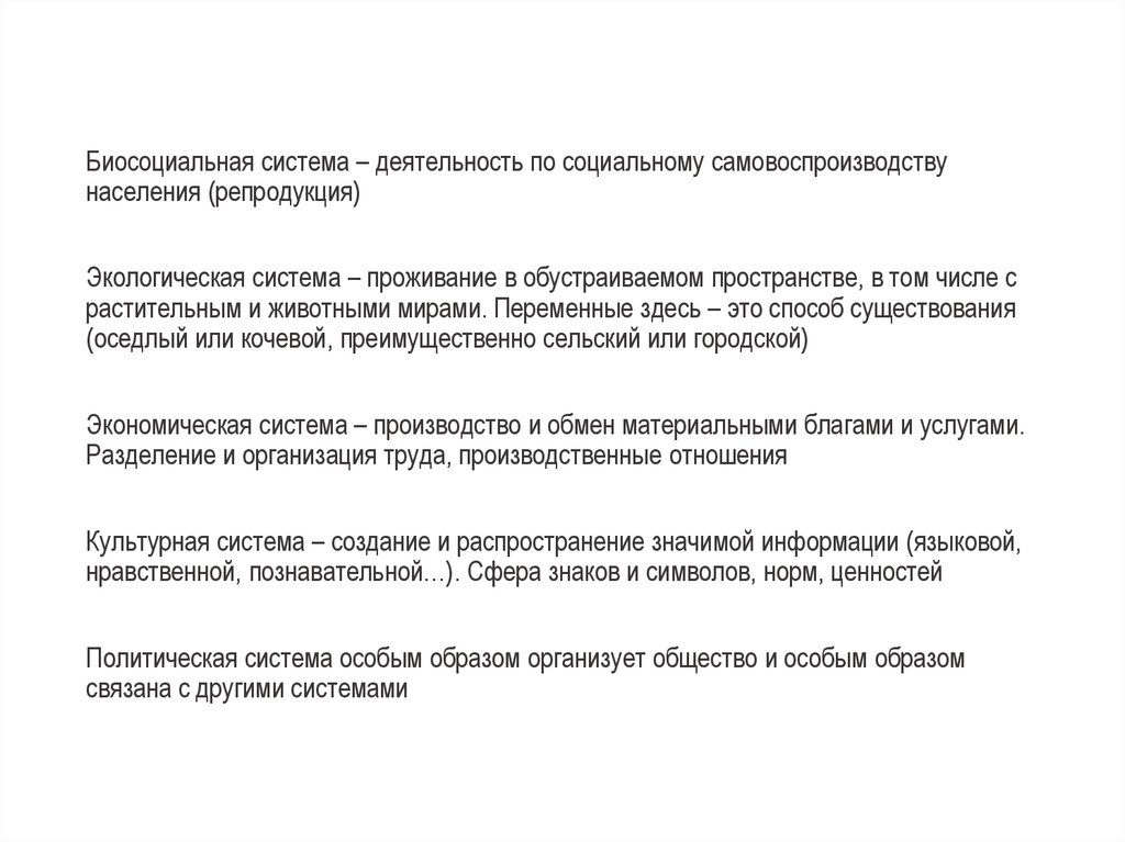 Биосоциальная система – деятельность по социальному самовоспроизводствунаселения (репродукция)