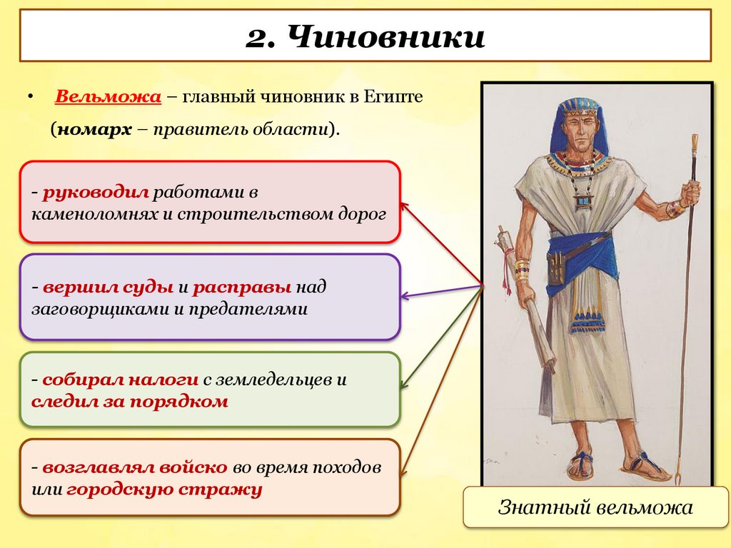 2. ЧиновникиВельможа – главный чиновник в Египте