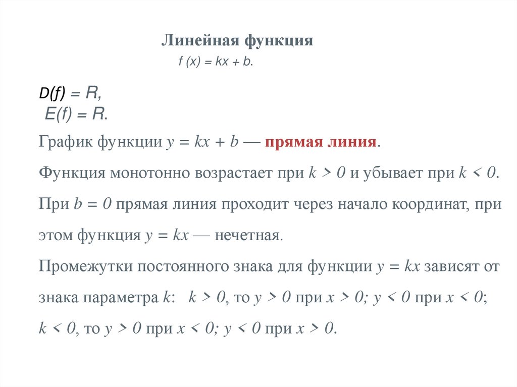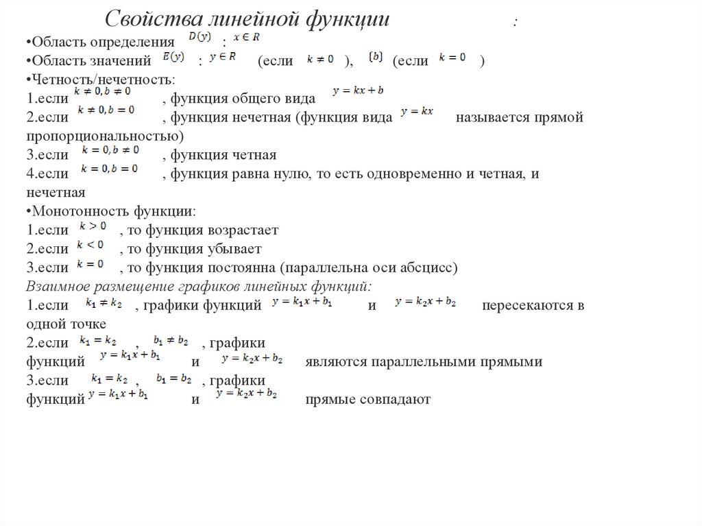 Свойства линейной функции: