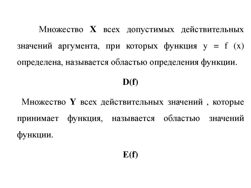 Множество X всех допустимых действительныхзначений аргумента, при которых функция y = f (x)